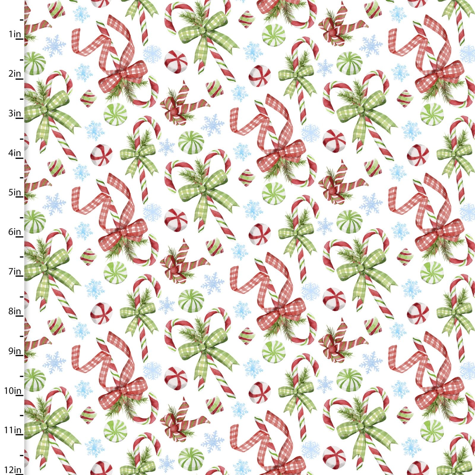 Winter Village - Candy Cane Lane - White - 1/2 yd